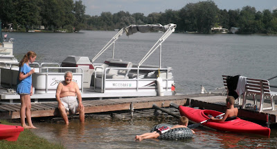 Joyce and Pee Wee enjoying the lake on Sunday. We are at 90 degrees today, ditto for Tuesday and Wednesday. Waiting to pack the motor home, hoping it cools down a bit tonight.